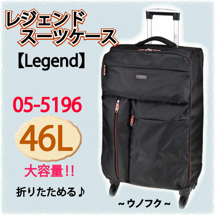 ◆素材 ポリエステル(リップストップ) ◆サイズ 〔本体〕約 幅39x高60x行22(cm) /〔外寸〕約 幅39.5x高71x行27(cm) ◆容量 約46L ◆重さ 約2700g ◆仕様 【外側前面】 ・ファスナーポケット×3 【内側】 ・ファスナーポケット×1 ・荷物固定ベルト×2 ◆原産国 中国(企画・デザインは日本) レジェンド 折りたためる スーツケースレジェンド スーツケース 05-5196