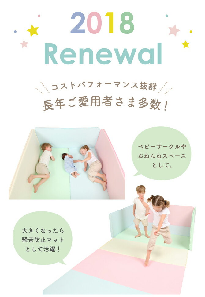 しっかりとして手触りもさらりとしたベビーサークルマットがリニューアル! ベビーサークルとプレイマット両方の機能があるので 赤ちゃんから幼児期まで長くお使いいただけます。
